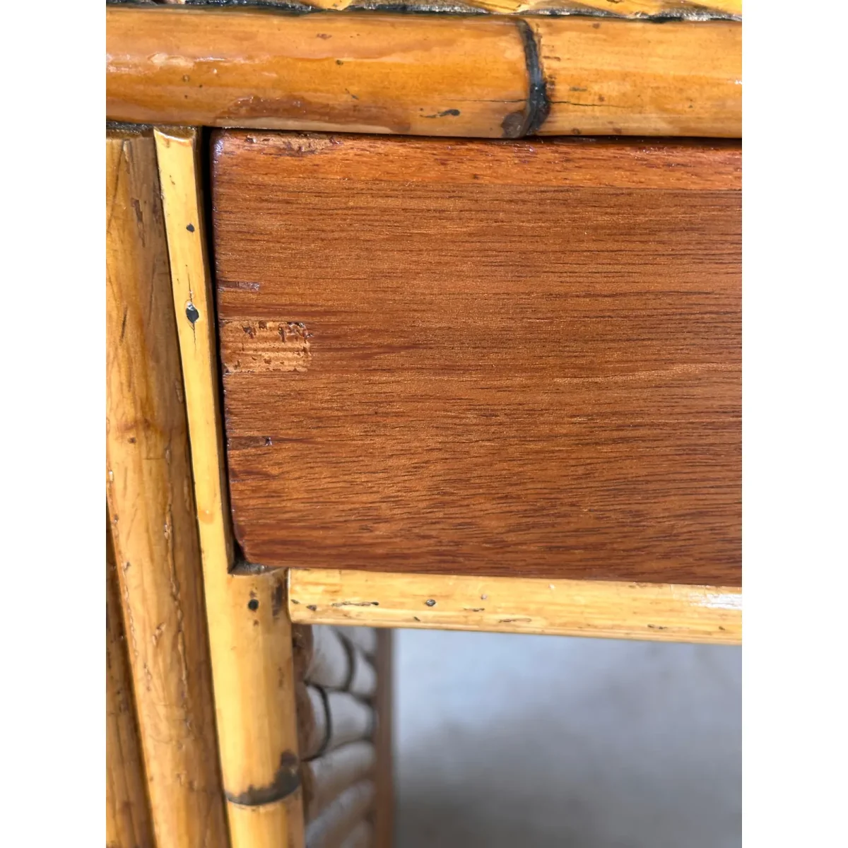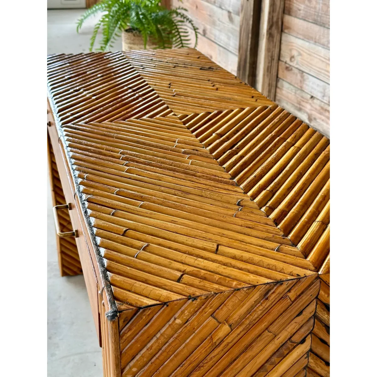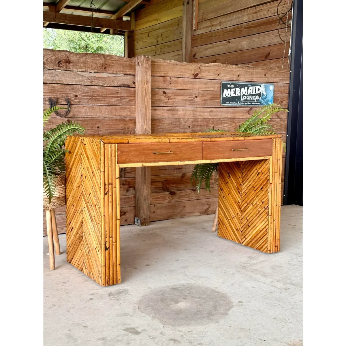 Mid-20th Century Refinished Split Rattan Chevron Two Drawer Floating Vanity or Desk