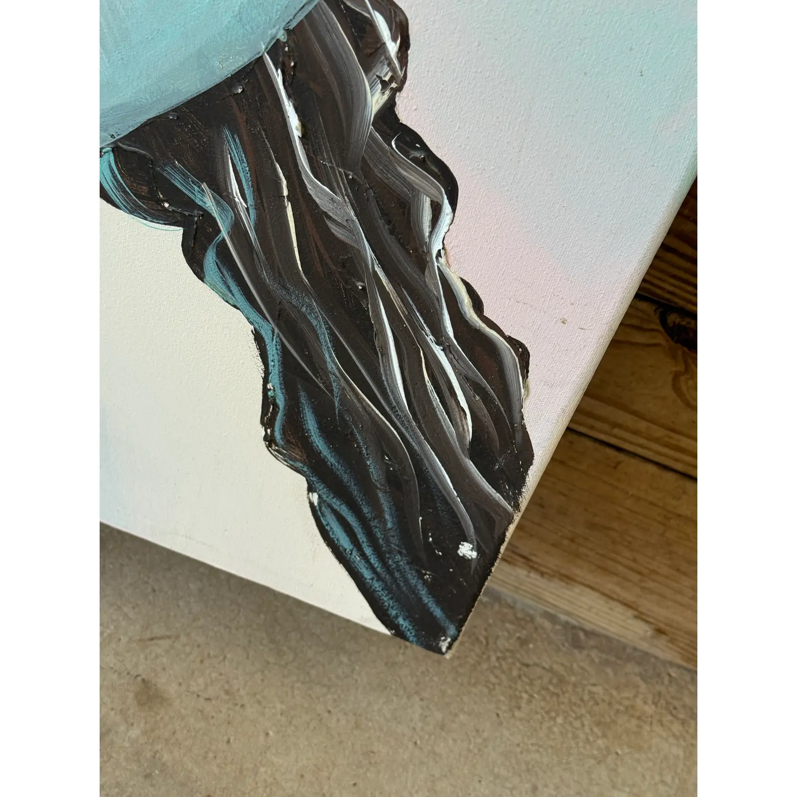 • Acrylic on canvas with richly layered, impasto-style brushstrokes