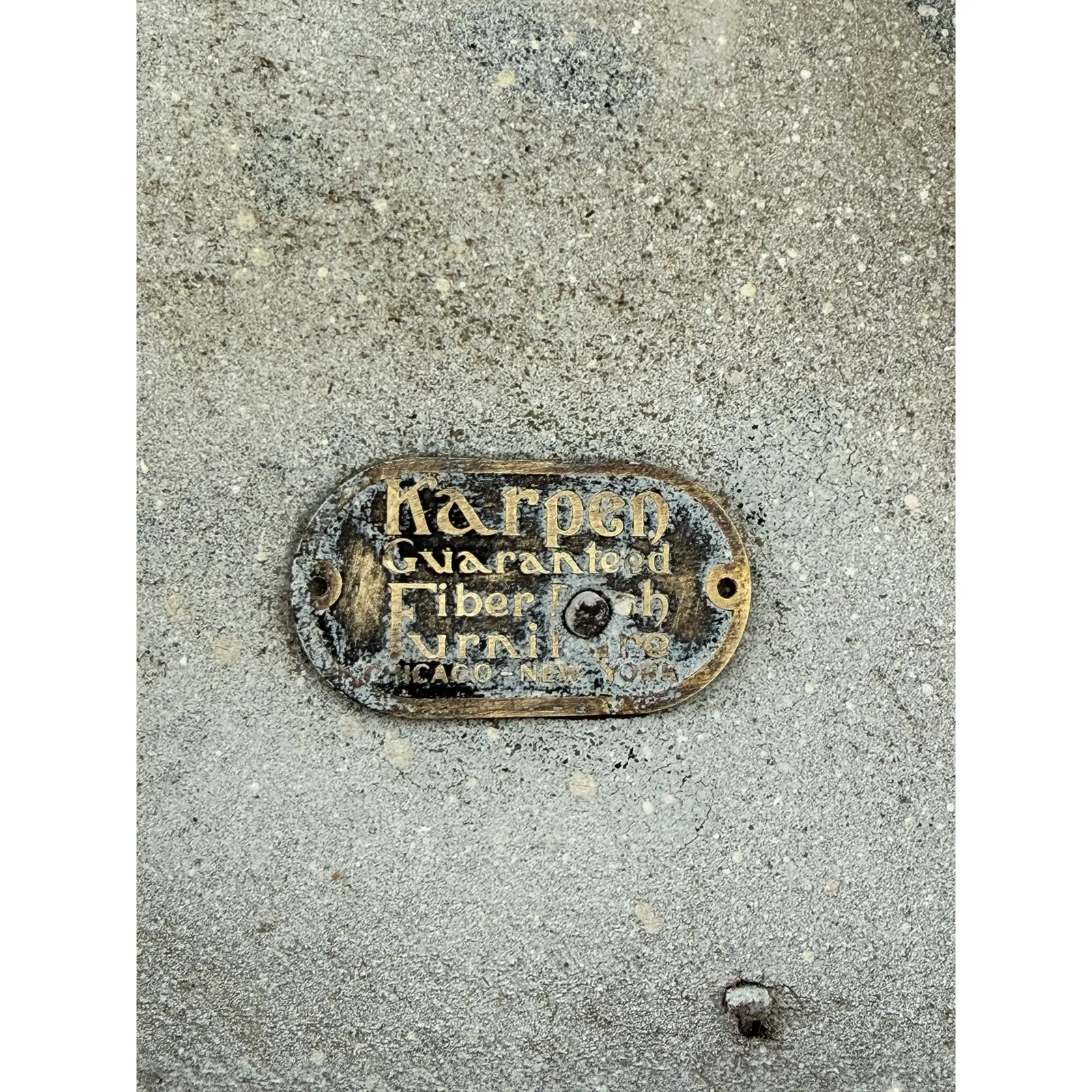 Exceptional antique fiber rush wicker stool or side table by Karpen Furniture, one of America’s most important early furniture manufacturers. This piece bears the original metal maker’s tag reading “Karpen Guaranteed Fiber Rush Furniture – Chicago, New York,” confirming authenticity and early production.