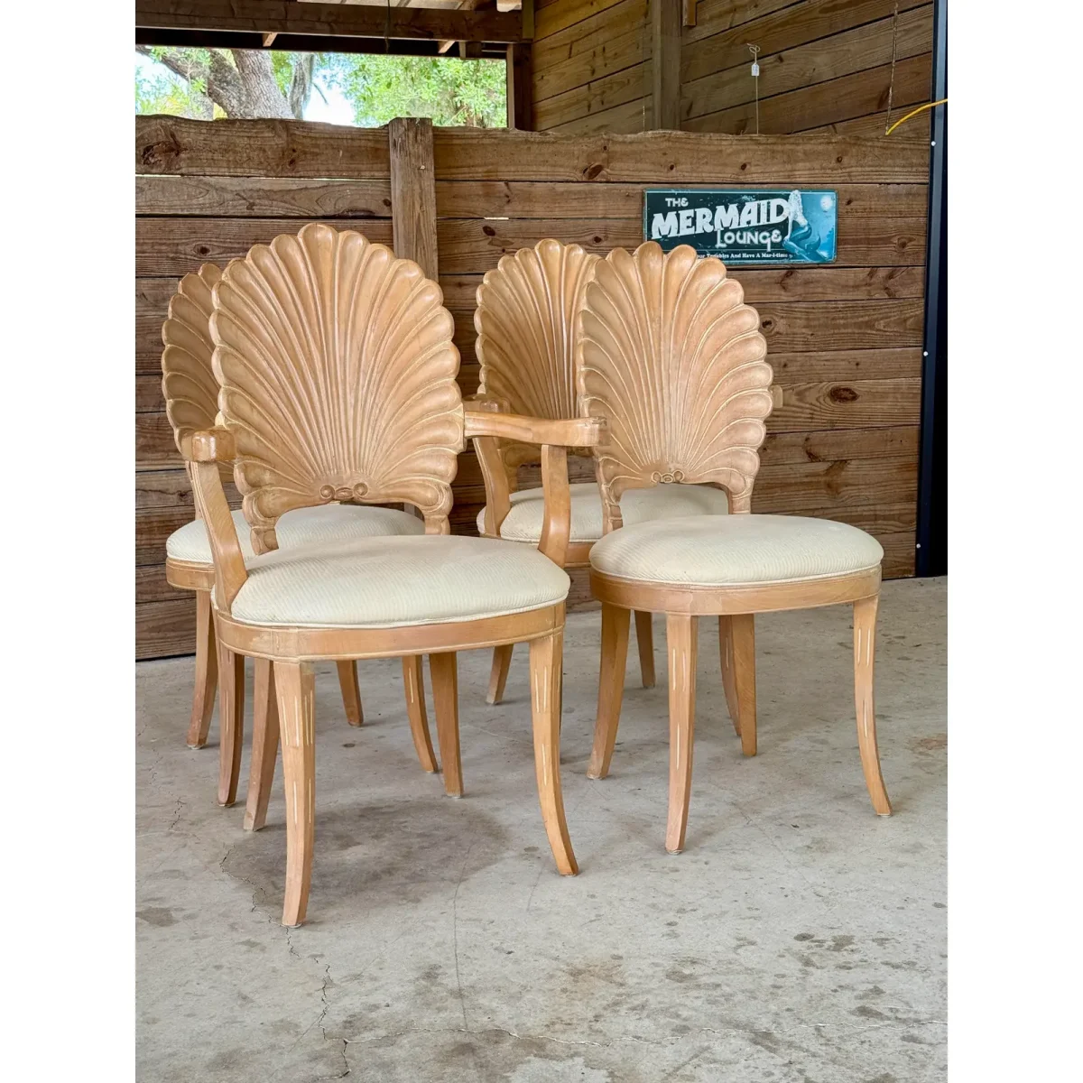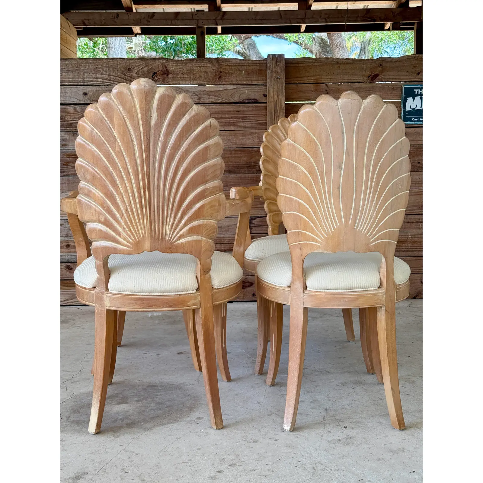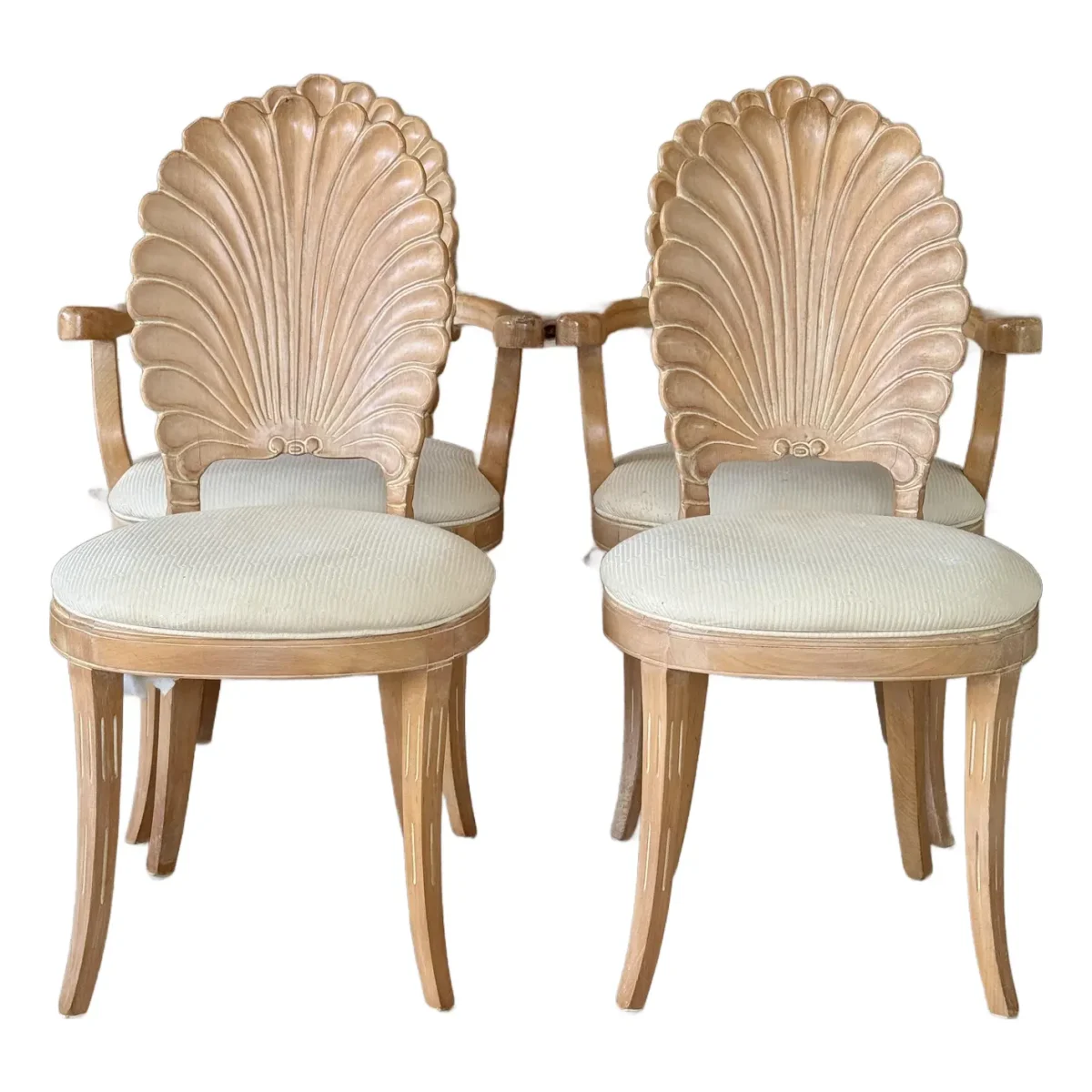 Set of four Mid-20th Century carved wood dining chairs by Andre Originals, featuring an iconic shell-back Grotto design.