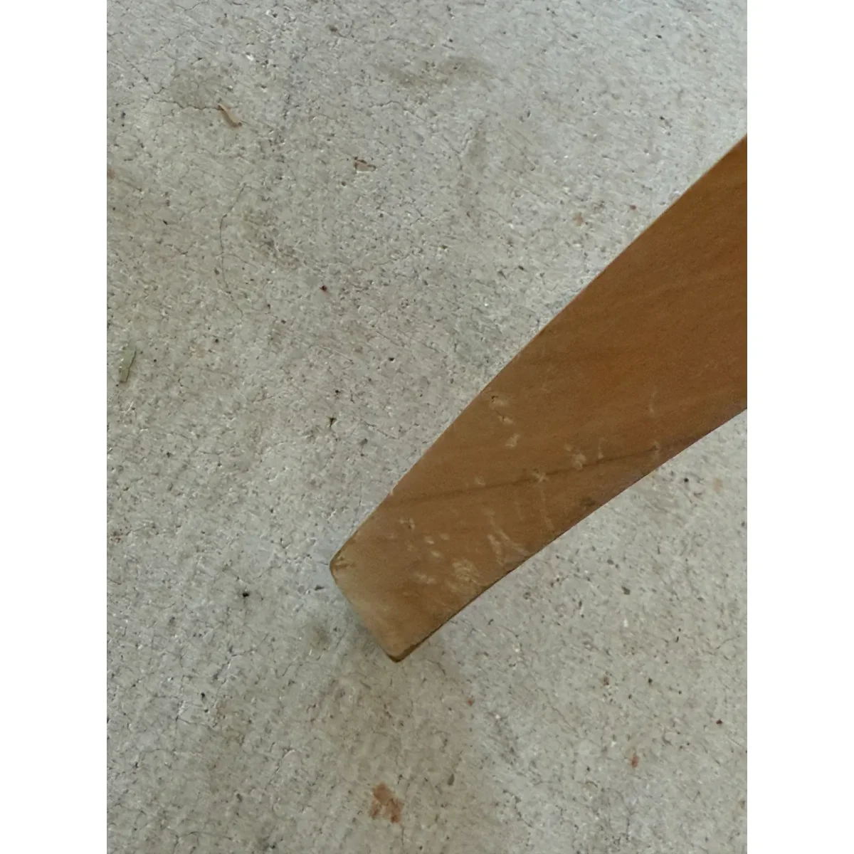 All four chairs have multiple scuffs, wear, and cracks to the finish consistent with these chairs considering age and use. One chair has a chip to the top as seen in photos.