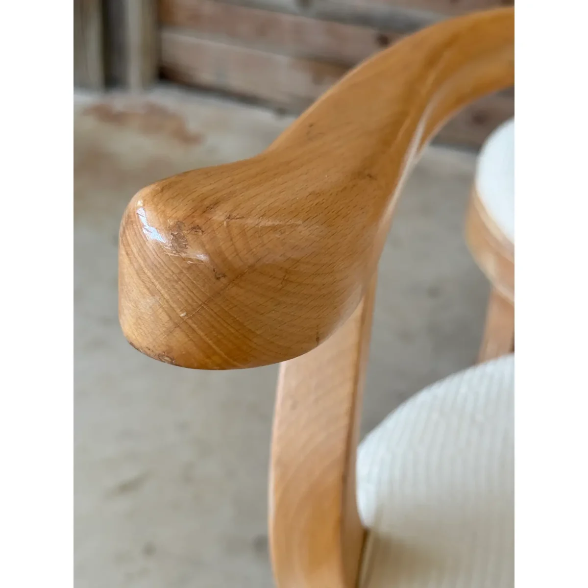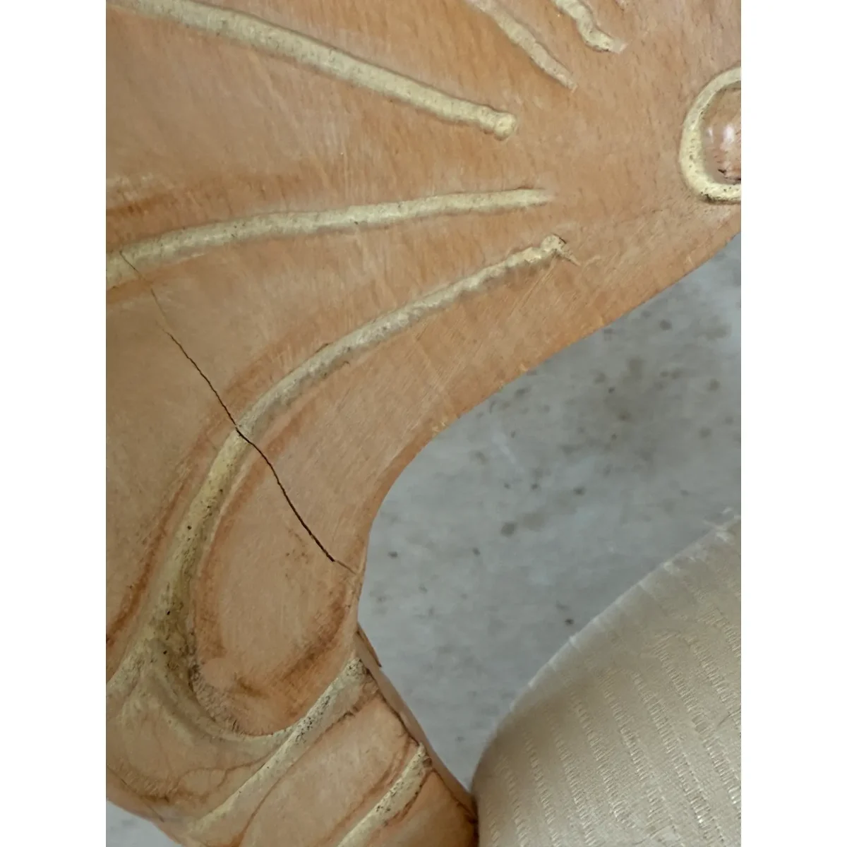 The frames display multiple scuffs, wear, and some cracks consistent with age and the delicate nature of this style. Perfect candidates for refinishing — whether lacquered for a fresh modern coastal look or left as-is for a charming, weathered appeal. Upholstery also shows wear and is ideal for recovering to suit your personal style.