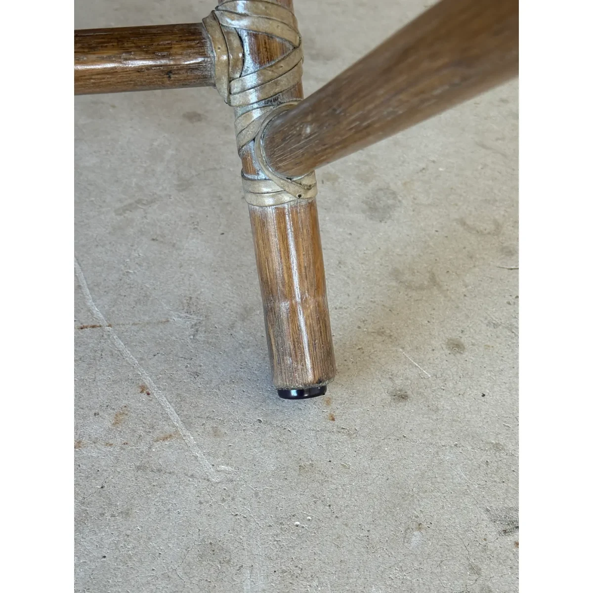 A light refinishing has been done to improve the appearance with some minor imperfections to the finish consistent with age and use. New textured Sunbrella fabric.