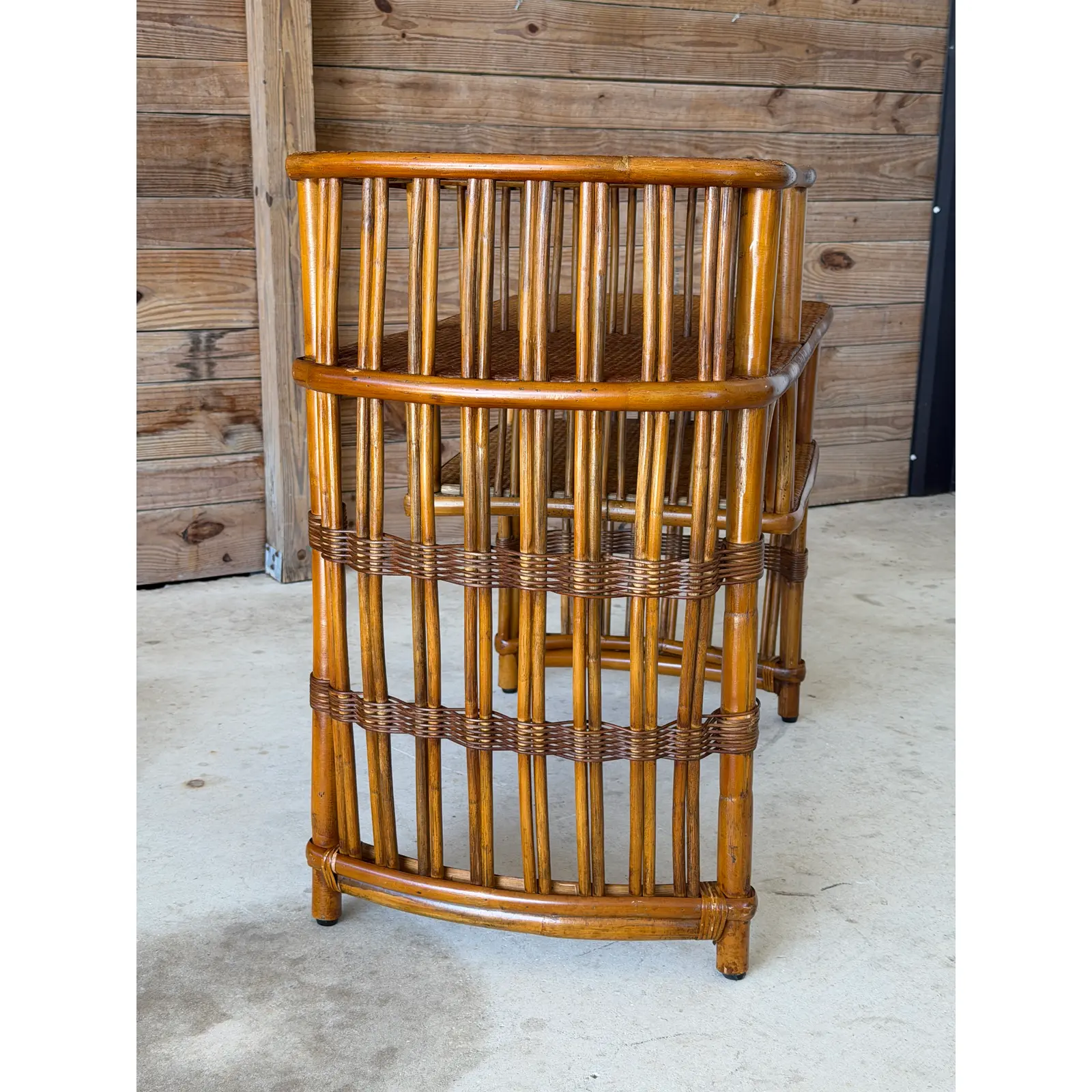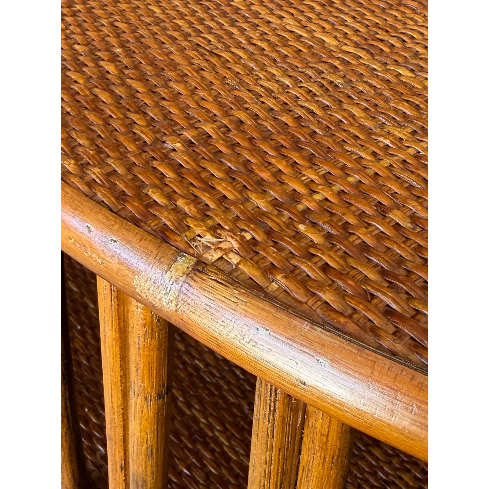 Great vintage condition • Minor wear, small nicks, and surface marks consistent with age and use including some minor wear to the rattan tops on edges • Structurally solid and sturdy • All wear adds to the authentic vintage character