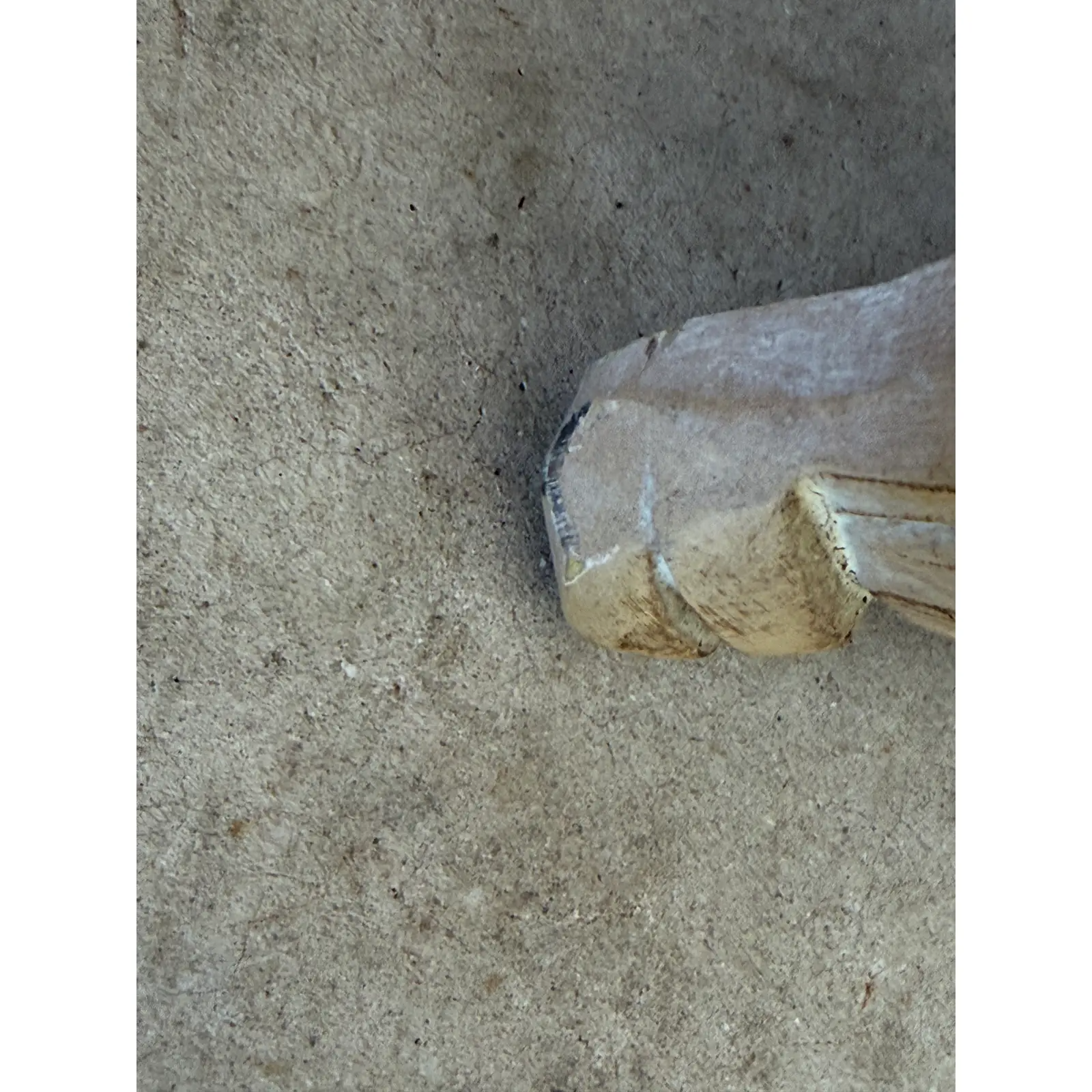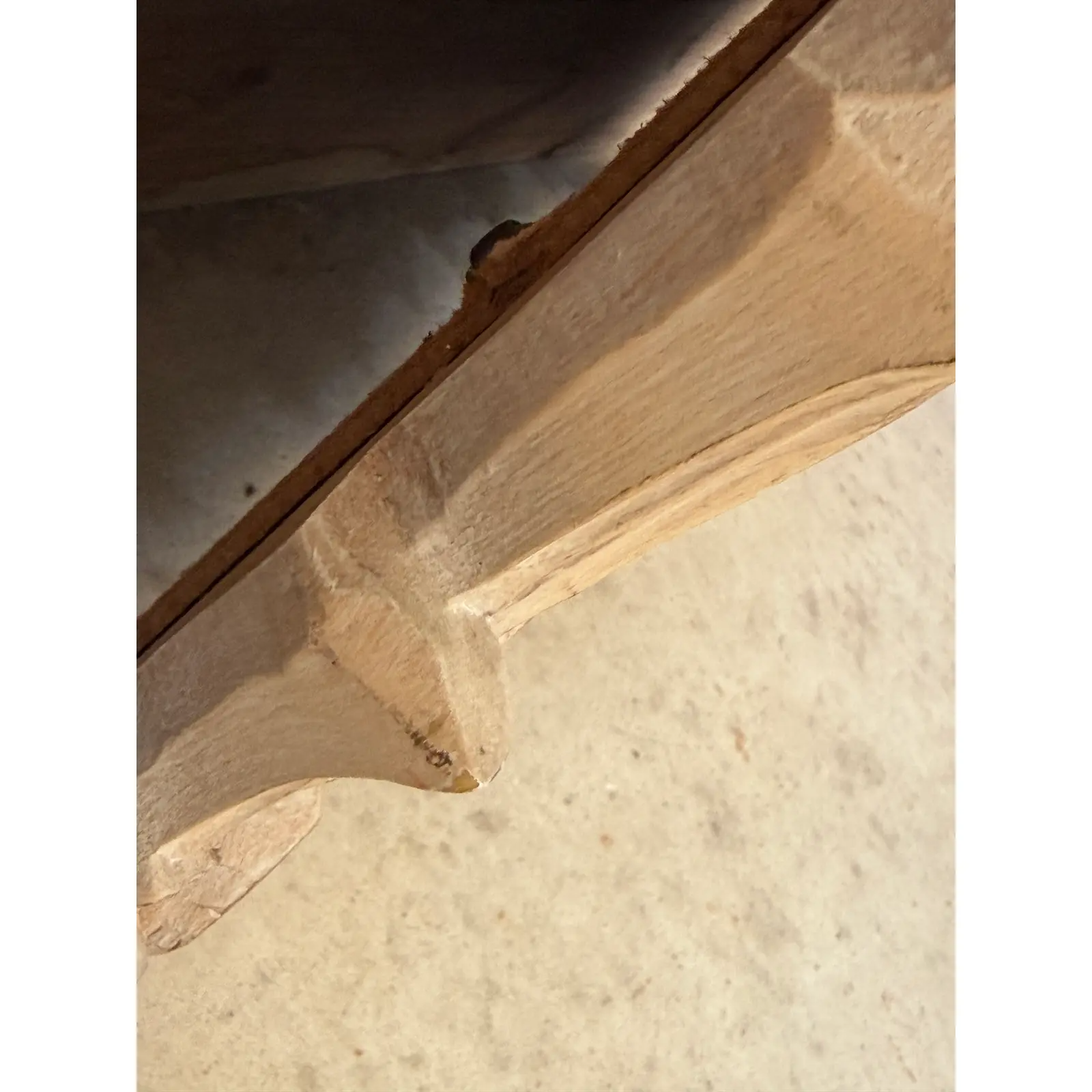 The finish shows honest wear consistent with age, adding to its relaxed, rustic character. One palm leaf has been professionally secured due to a prior crack and remains stable.