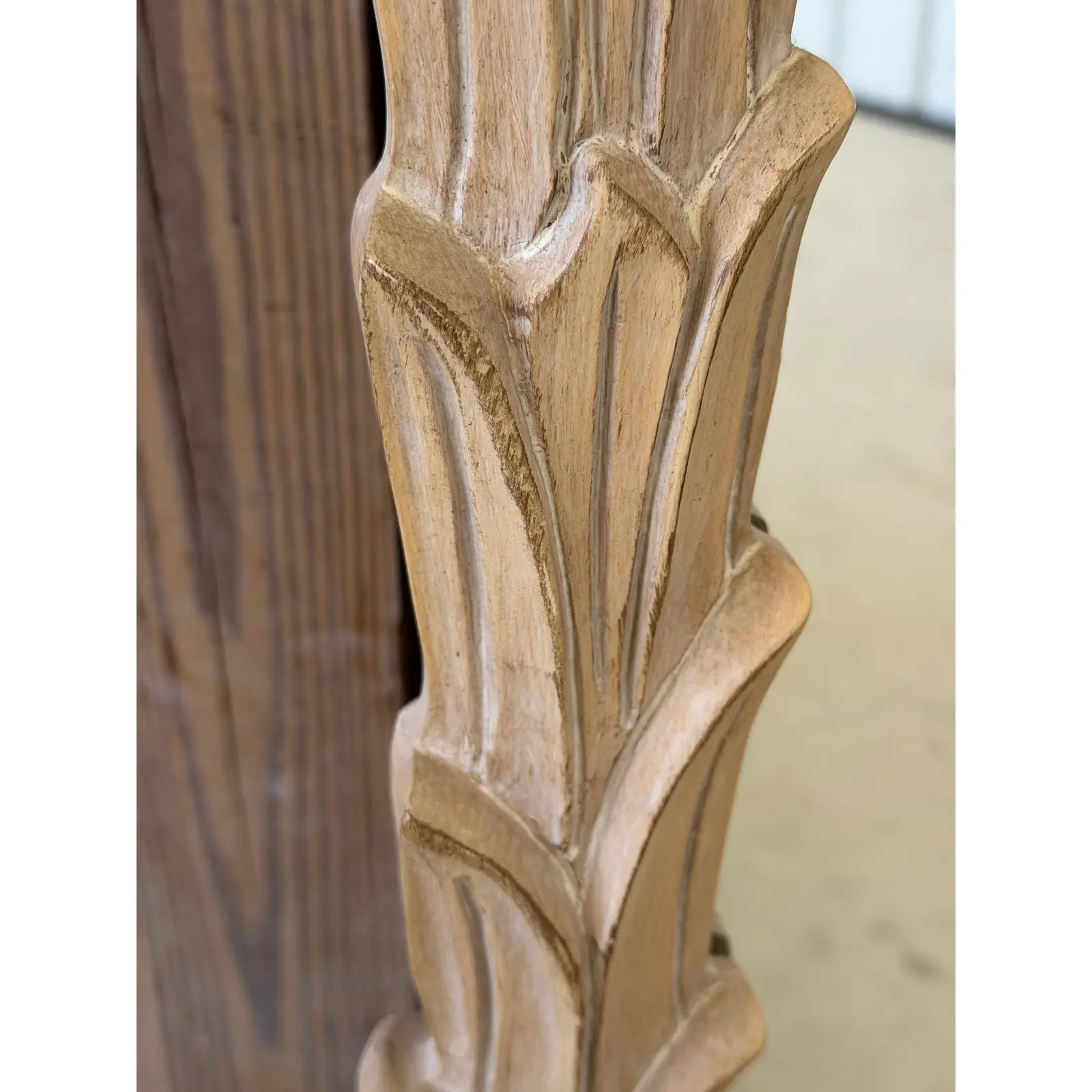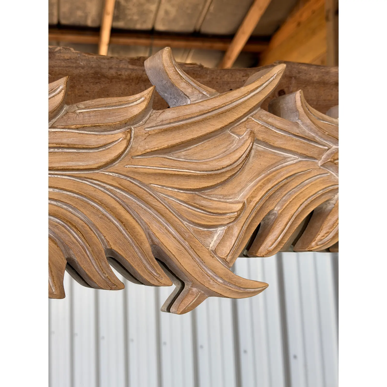 The deeply carved palm fronds create dramatic texture while maintaining a warm, natural wood finish that works effortlessly in coastal, Palm Beach, British Colonial, or organic modern interiors.