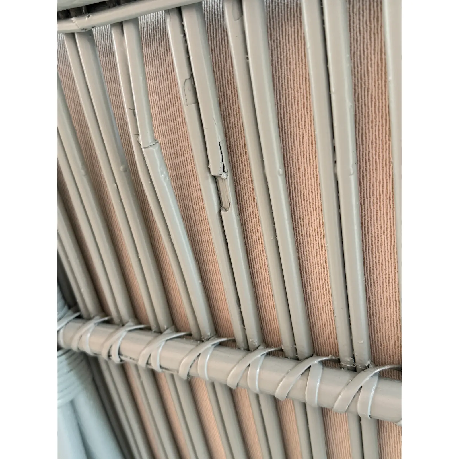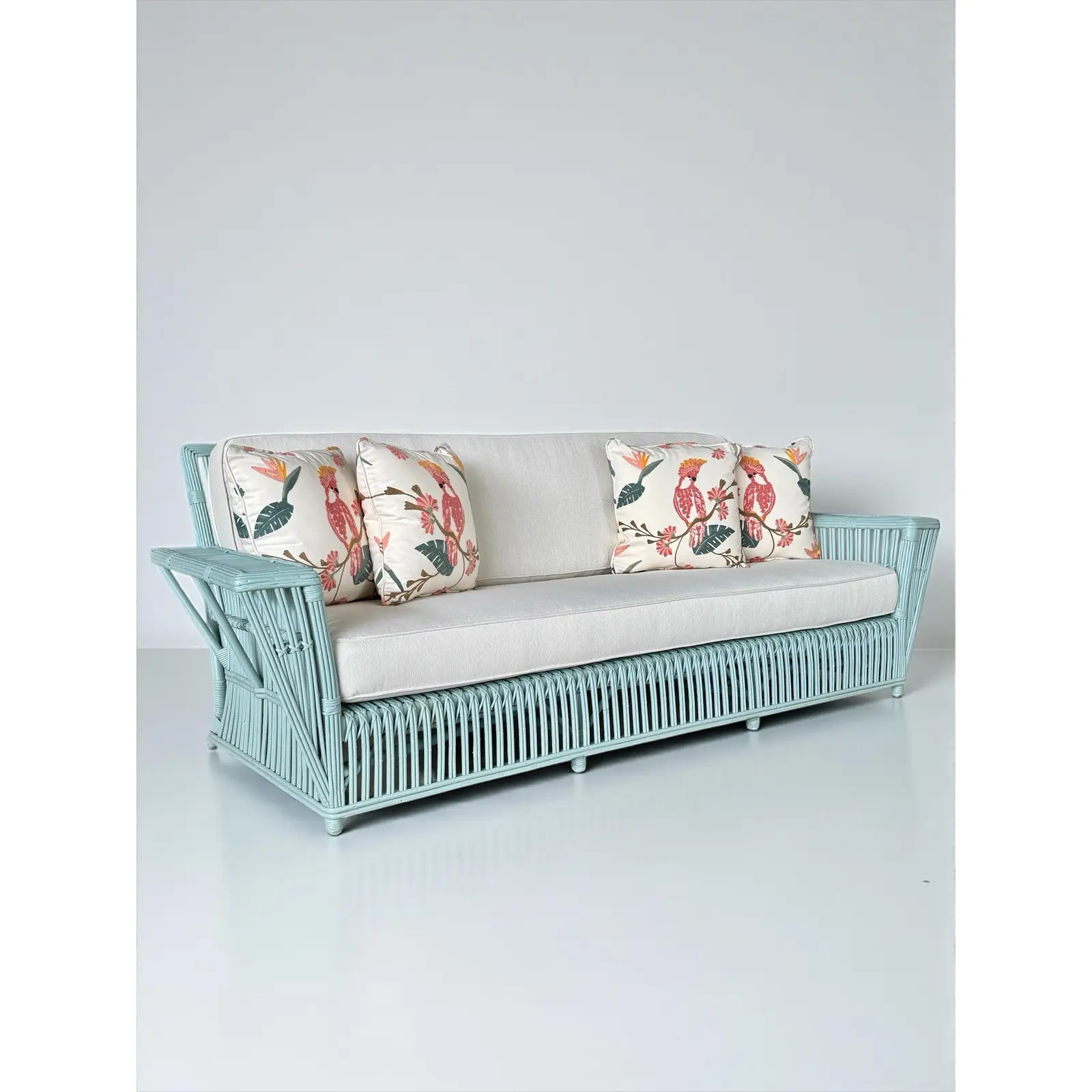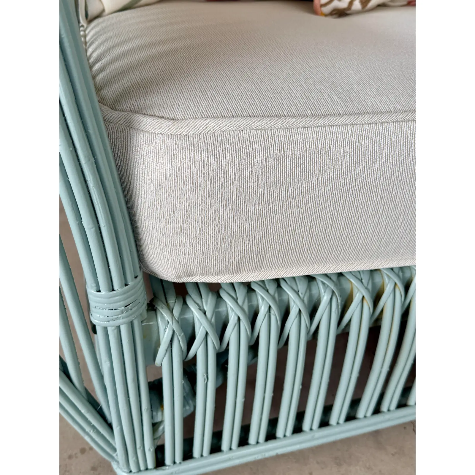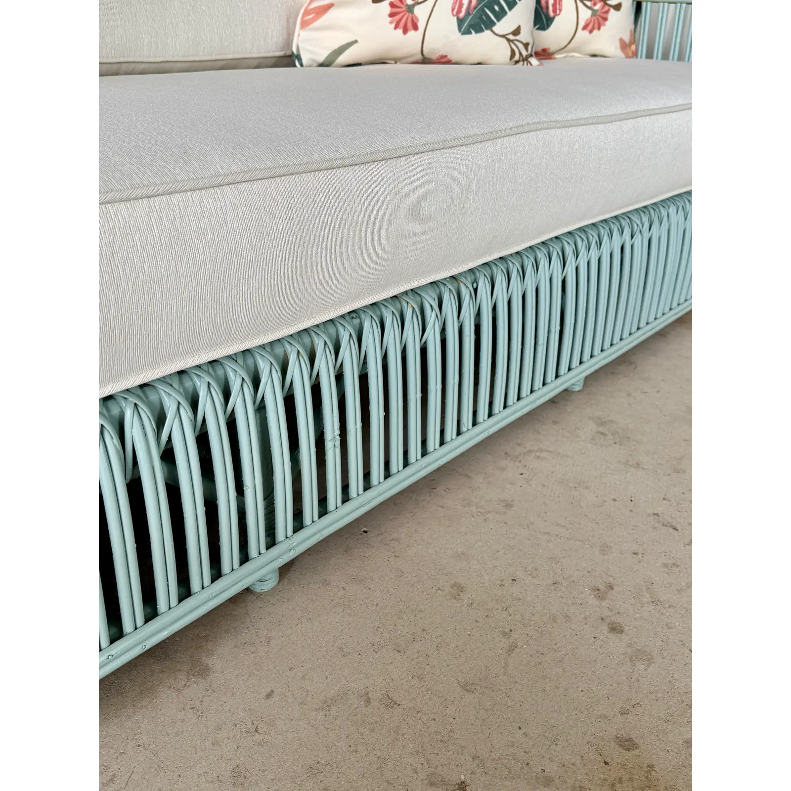 An iconic and sought-after design by Ficks Reed, this 1950’s Stick Rattan “President’s Sofa” has been completely reimagined in a refined Coastal Regency palette. A rare piece from one of the most collectible American rattan makers, it embodies timeless craftsmanship, luxury, and laid-back elegance.