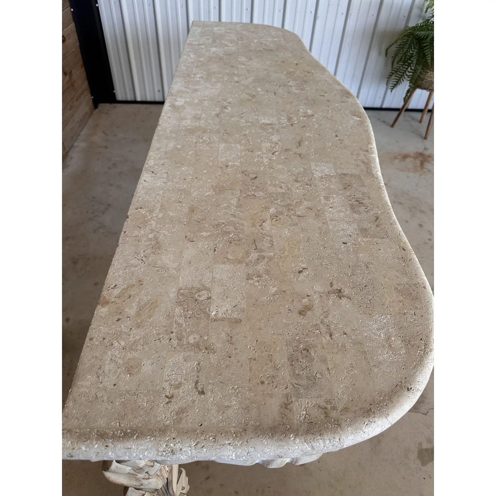 Elevate your interiors with this exquisite late 1980s console table by Robb & Stucky. Featuring a faux stone top with a subtly textured finish, this piece exudes timeless sophistication.